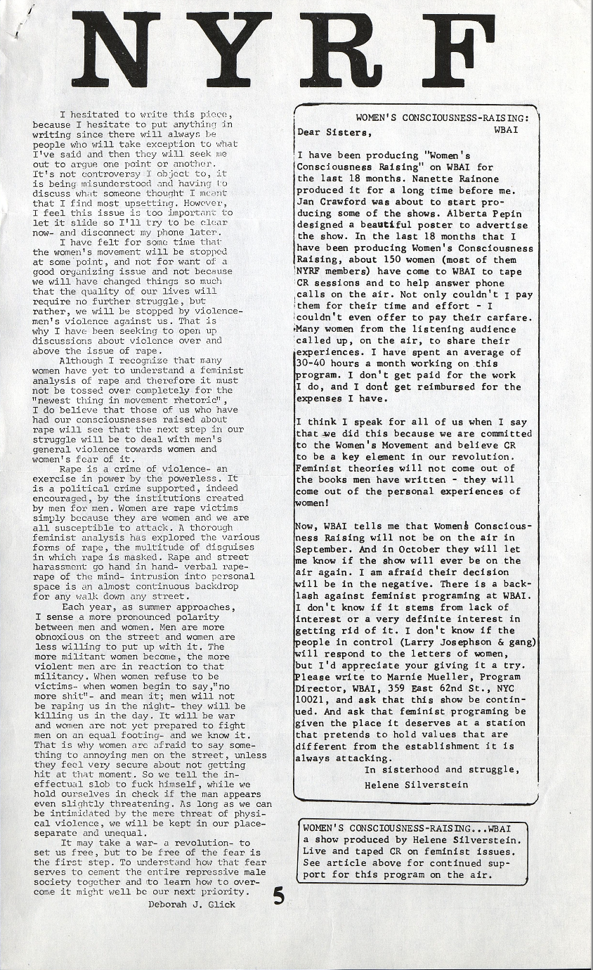“New York Radical Feminists Newsletter, 09/01/1974,” Lesbian Herstory Archives AudioVisual Collections, accessed December 15, 2025, https://www.herstories.prattinfoschool.nyc/omeka/items/show/1522.